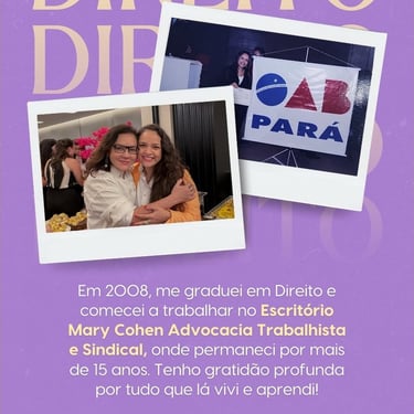 Comecei minha experiência profissional na advocacia em 2008, atuando na área trabalhista e sindical.
